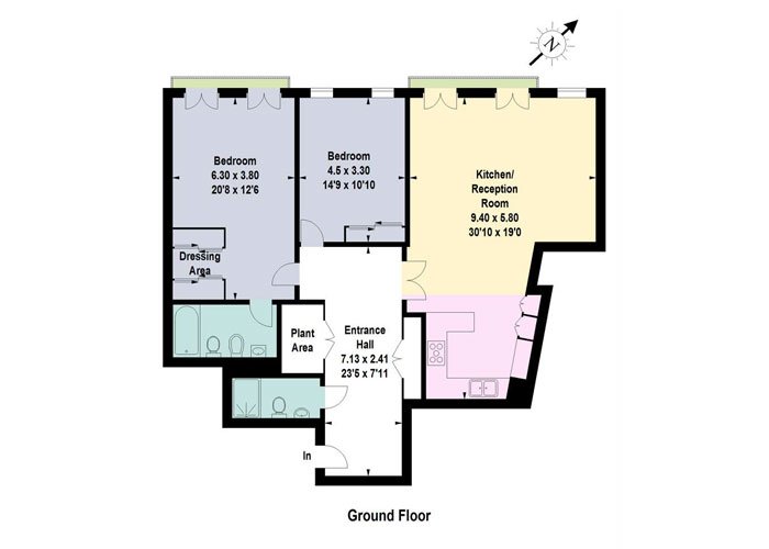 The primary bedroom is a sanctuary of relaxation, complete with a dressing area and en-suite bathroom. The second double bedroom includes built-in wardrobes and convenient access to a second bathroom, offering flexibility for guests or additional family members.